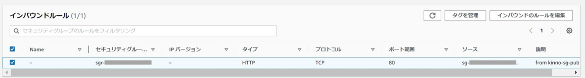 ので、送信元インスタンスから8080への接続を許可するルール追加します。
