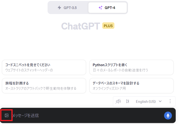 ChatGPT Plusに実装された画像アップロード用のボタンから、前述のAKSの構成図をアップロードし、