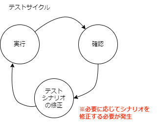 実際のテスト作業は実行 => 確認 => シナリオの修正(必要あれば)を繰り返すことになります。