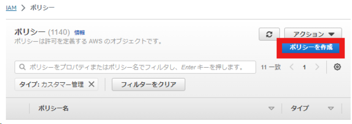 AWSでIAMのポリシーを作成します。