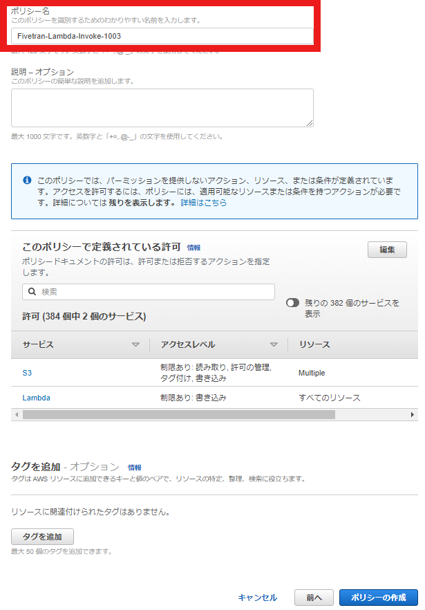 ➃ (AWS/Fivetran) IAMのロールの作成