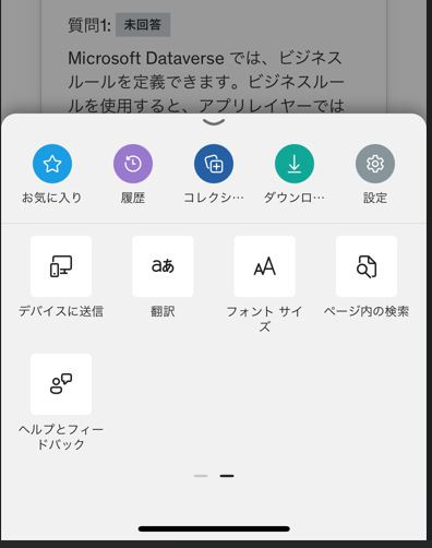 - Edgeで翻訳したいサイトを開き、アプリ右下の三本線を選択する