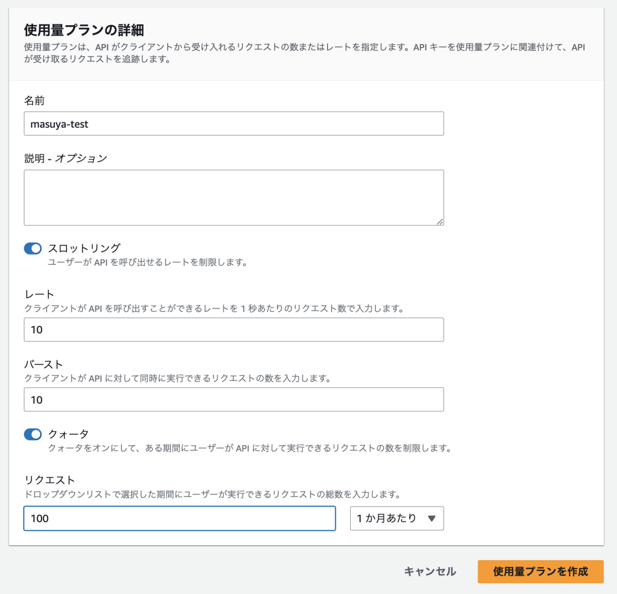 使用量プランを作成を進めます。