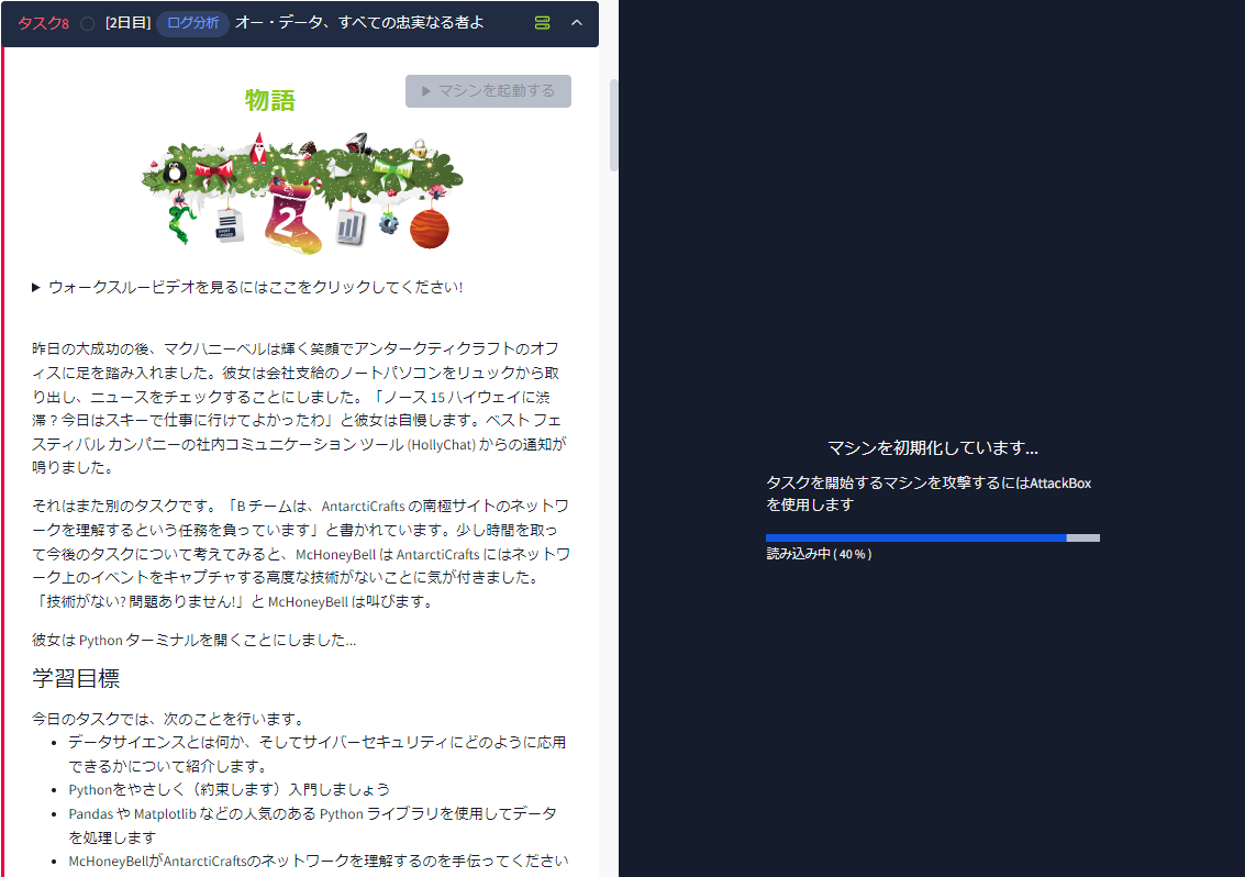 TryHackMeの「Advent of Cyber2023の復習と2024の予習」をテーマにした連載第3回目の今回は「Log analysis(ログ分析)」の問題に挑戦してみましょう。