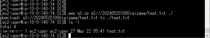S3バケットからサンプルファイルを取得してみます。問題なく取得できました。