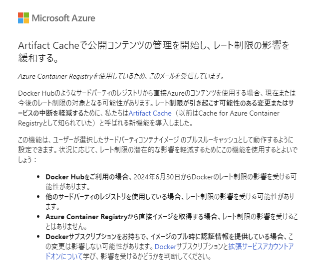 Azure でコンテナを利用されている皆さまのところには、以下のようなメールが届いているかと思います。