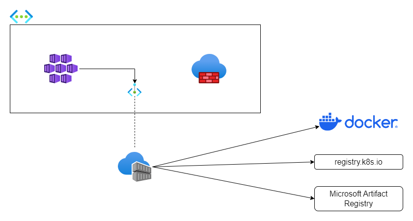 例えば以下のようにアウトバウンド通信を制限した構成の場合、Firewall のポリシーにアクセス先のレジストリを追加しなければなりません。