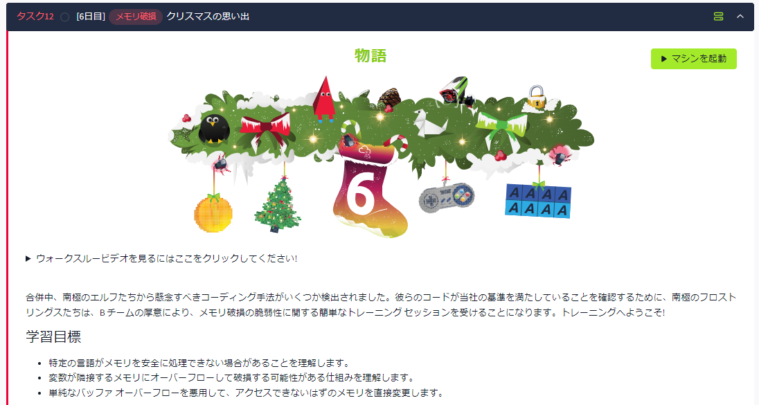 今回はMemory corruption(メモリー破壊)のテーマのもと以下について学ぶタスクをご紹介しました。