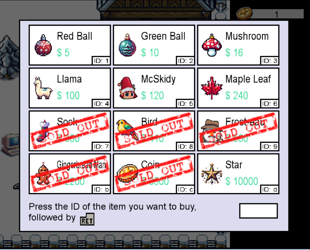 このゲームのゴールはVan Frosty からクリスマス ツリーの星を購入してクリスマスを救うことです。 ゲームを始めましょう。