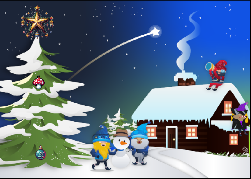 星が入手できたらクリスマスツリーの前に行きスペースキーを押して会話してください。