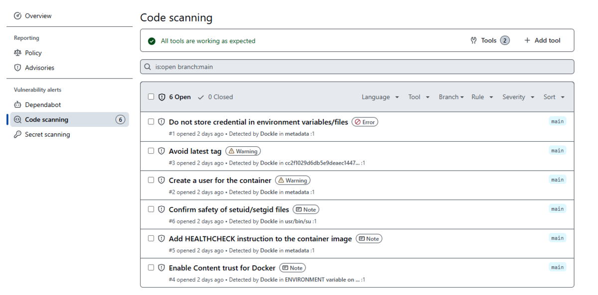 - name: Upload SARIF file uses: github/codeql-action/upload-sarif@v3 with: sarif_file: dockle-report.sarif