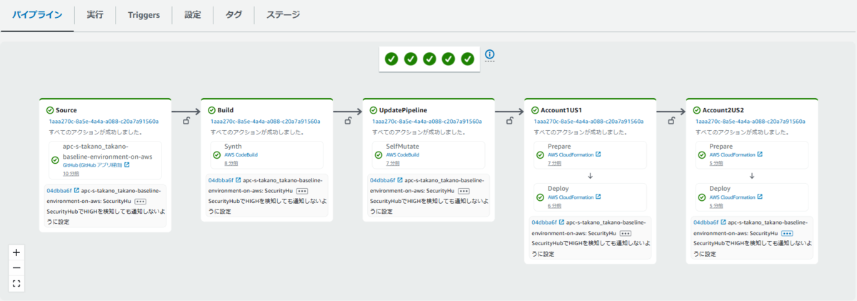 [パイプライン]タブでもすべてのステージのアクションが成功していることを確認できます。