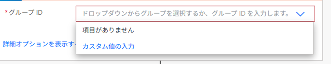 コネクタ「Office 365グループ」→ アクション「グループメンバーの一覧表示」を選択。「カスタム値の入力」に②で取得したグループIDを入力。