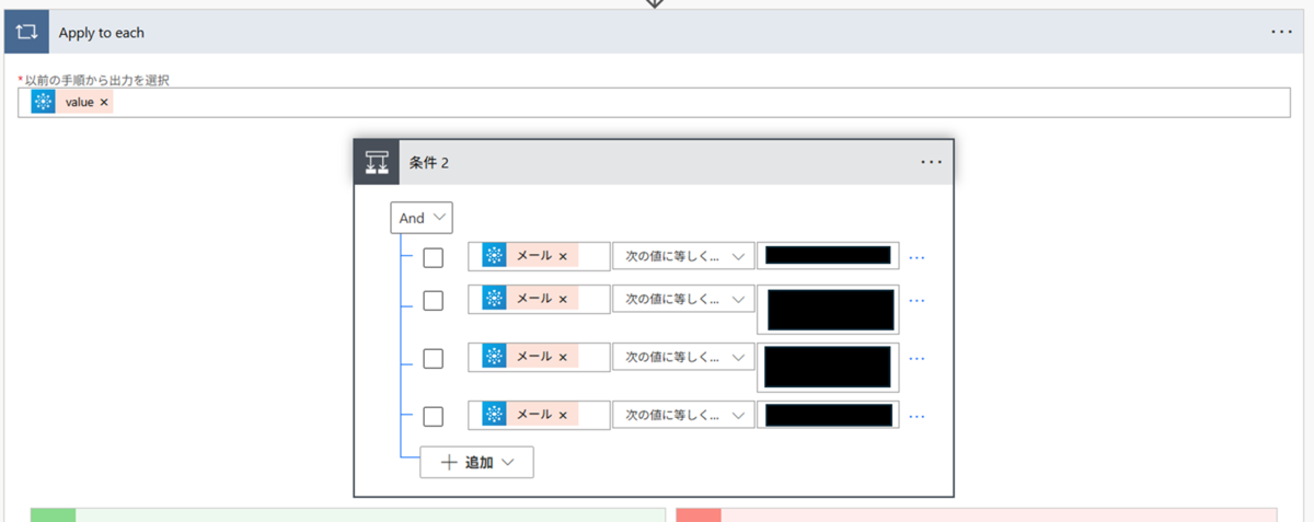 (2) 「Apply to each」で取得した配列をループ処理し、条件に合うメンバーのみを抽出する。