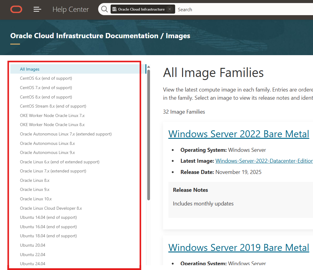 https://docs.oracle.com/ja-jp/iaas/Content/Compute/References/images.htm